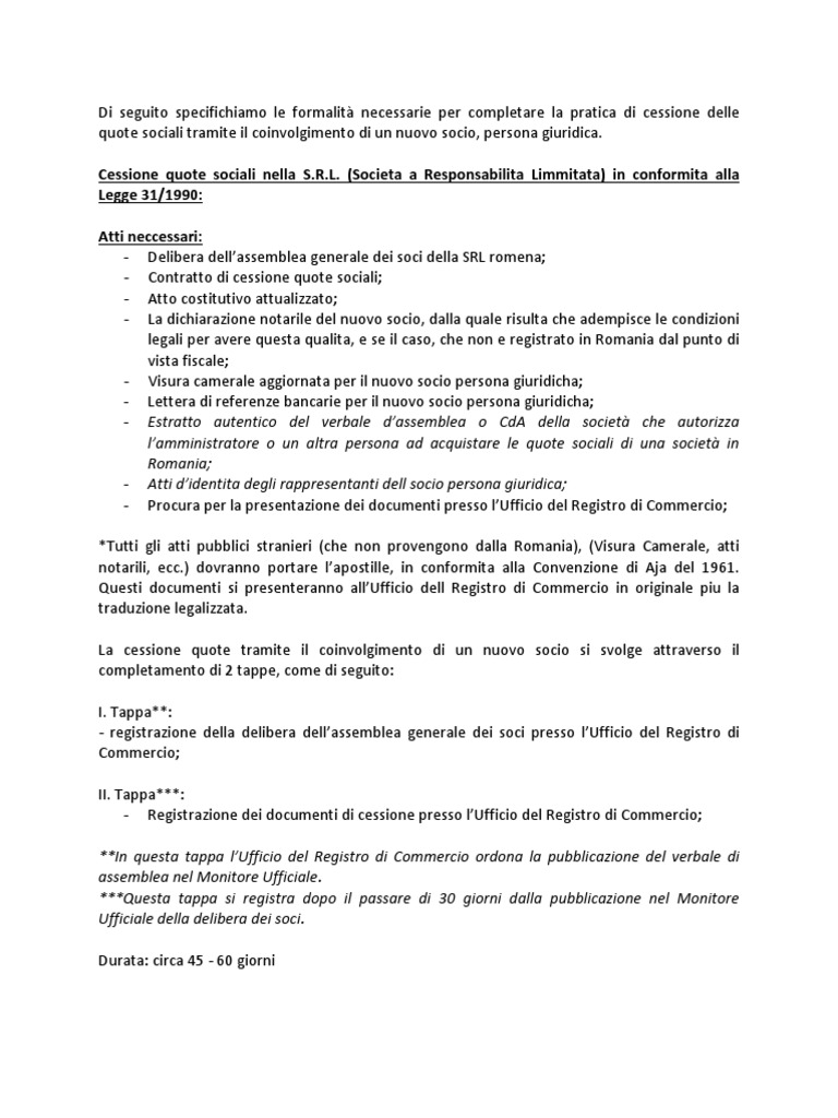 Lettera vendita quote srl. Contratto Preliminare di Cessione di Quote o Azioni - LexDo.it Il contratto preliminare di cessione di quote o azioni si usa per impegnarsi a vendere o acquistare la partecipazione di una società di capitali ( SRL, SRLS, SPA ). Di regola, una volta sottoscritto il preliminare, le parti dovranno recarsi da un notaio per formalizzare la vendita delle quote o azioni societarie. TrovoAste.it - Aste giudiziarie immobiliari: annunci di ... Trovoaste.it è il sito del Corriere della Sera dedicato agli annunci di aste giudiziarie.. Questi annunci riguardano la messa in vendita di immobili all'asta secondo procedure definite per legge ed eseguite da curatori ed avvocati per conto di singoli tribunali ed enti sul territorio nazionale italiano. Vendita di quote di società: quando c'è la prelazione dei soci? qualora tizio, non rispettando il patto, venda a sempronio le quote della s.r.l., caio potrà solo rivendicare il risarcimento da tizio, ma non potrà rendere nulla la vendita: questo perché - sostiene la corte - il patto parasociale ha valore solo tra le parti e, pertanto, il diritto di prelazione che con esso viene attribuito non può essere … Come cedere le quote di una Srl - Lavoro e Finanza Volete andare in vacanza e siete intenzionati a cedere delle quote di partecipazione di una S. R. L. (Società a responsabilità limitata) ma vi spaventano i costi? Vi spiegheremo come! Provate ad affidarvi ai consigli di questa guida e probabilmente vi accorgerete che cedere le quote di una srl non è né impossibile né particolarmente oneroso.