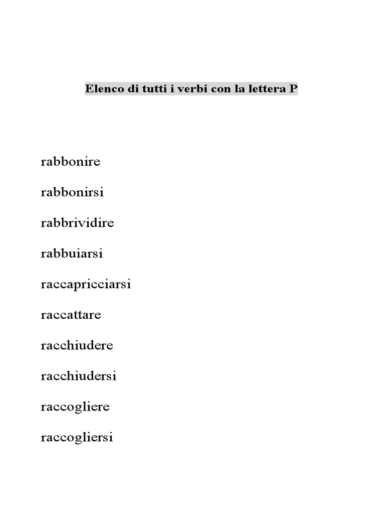 Verbi con la lettera t
